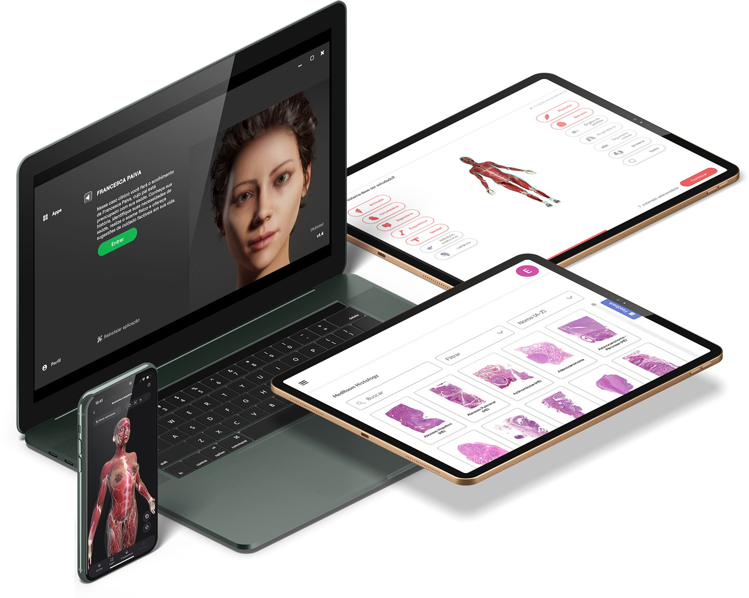 Abrangemos os três pilares da educação em biologia e saúde, nossos produtos foram pensados para proporcionar aos usuários uma experiência de aprendizado prático e realista.