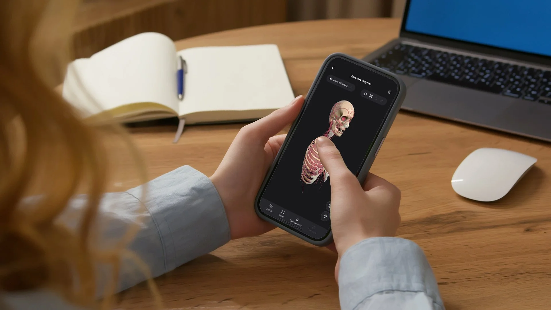 Ao poder manipular virtualmente estruturas anatômicas, o estudante se torna agente ativo da própria aprendizagem. Isso contribui para reduzir a dependência exclusiva de momentos presenciais e amplia as possibilidades de revisão contínua.