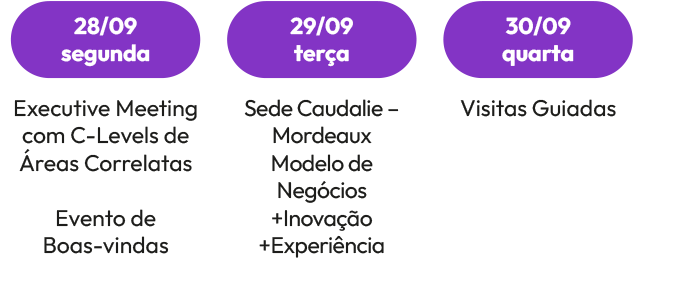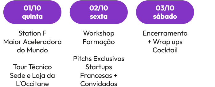 Entre os destaques estão a visita à Caudalie, em Bordeaux, para compreender modelo de negócio, inovação e experiência de marca; a imersão na Station F, maior aceleradora de startups do mundo; encontros com executivos e sessões exclusivas com startups francesas; além de visitas técnicas a empresas icônicas como a L’Occitane.