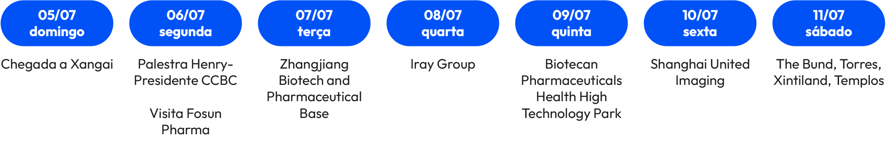 O roteiro passa por cidades estratégicas como Xangai, Shenzhen e Pequim, cada uma com um papel claro na construção da jornada. Entre os destaques estão visitas técnicas a centros de inovação, bases farmacêuticas, empresas de tecnologia médica, hospitais e instituições ligadas à saúde e à tecnologia, além de encontros e palestras com representantes do ecossistema local.