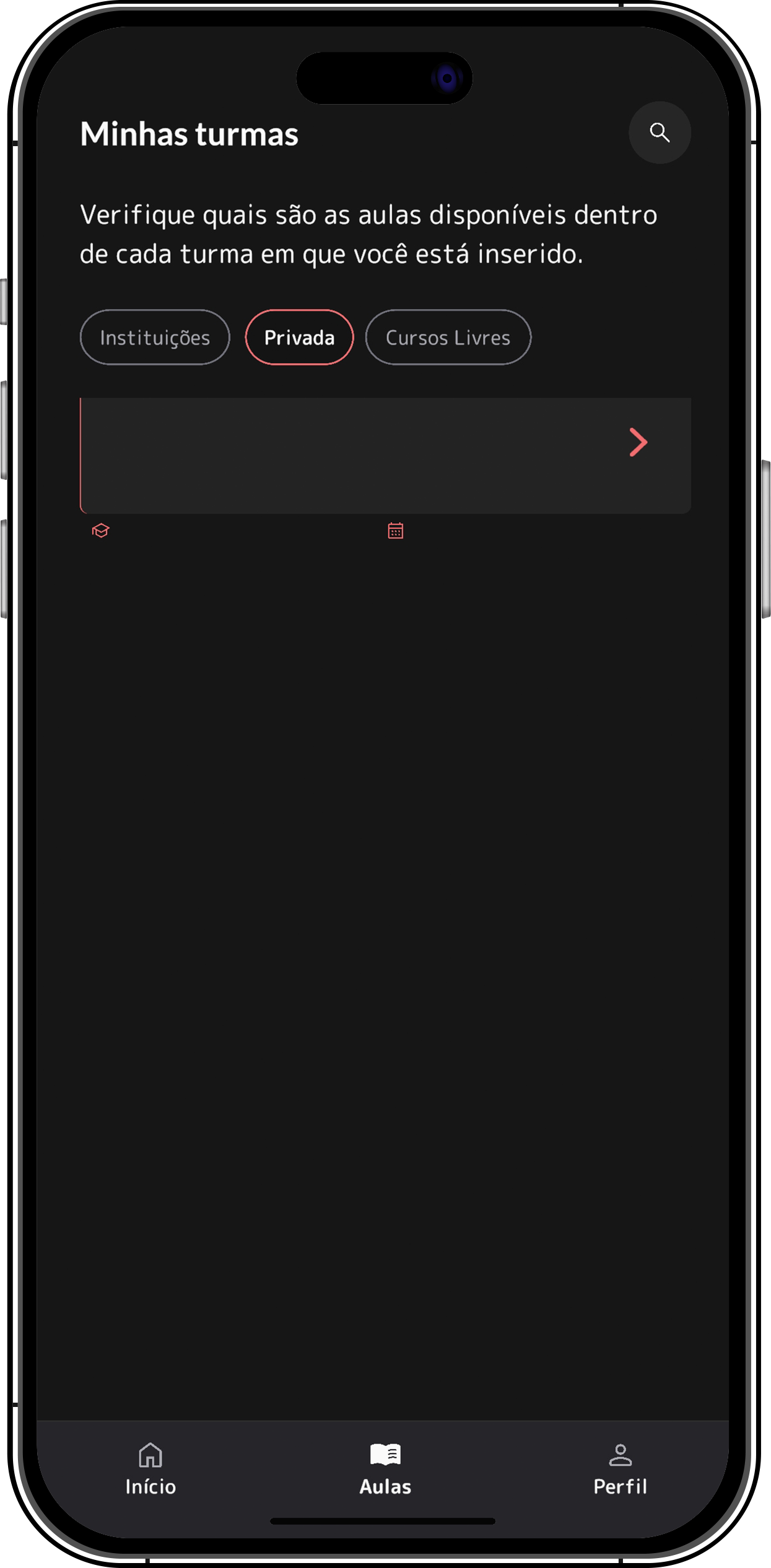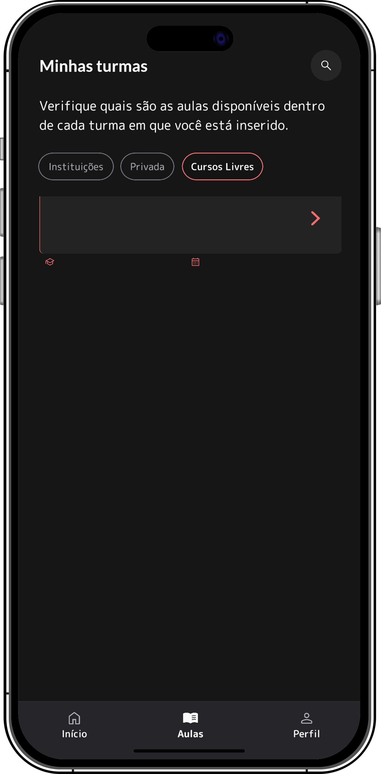 Ao acessar Turmas você terá acesso às aulas criadas pelo seu professor.